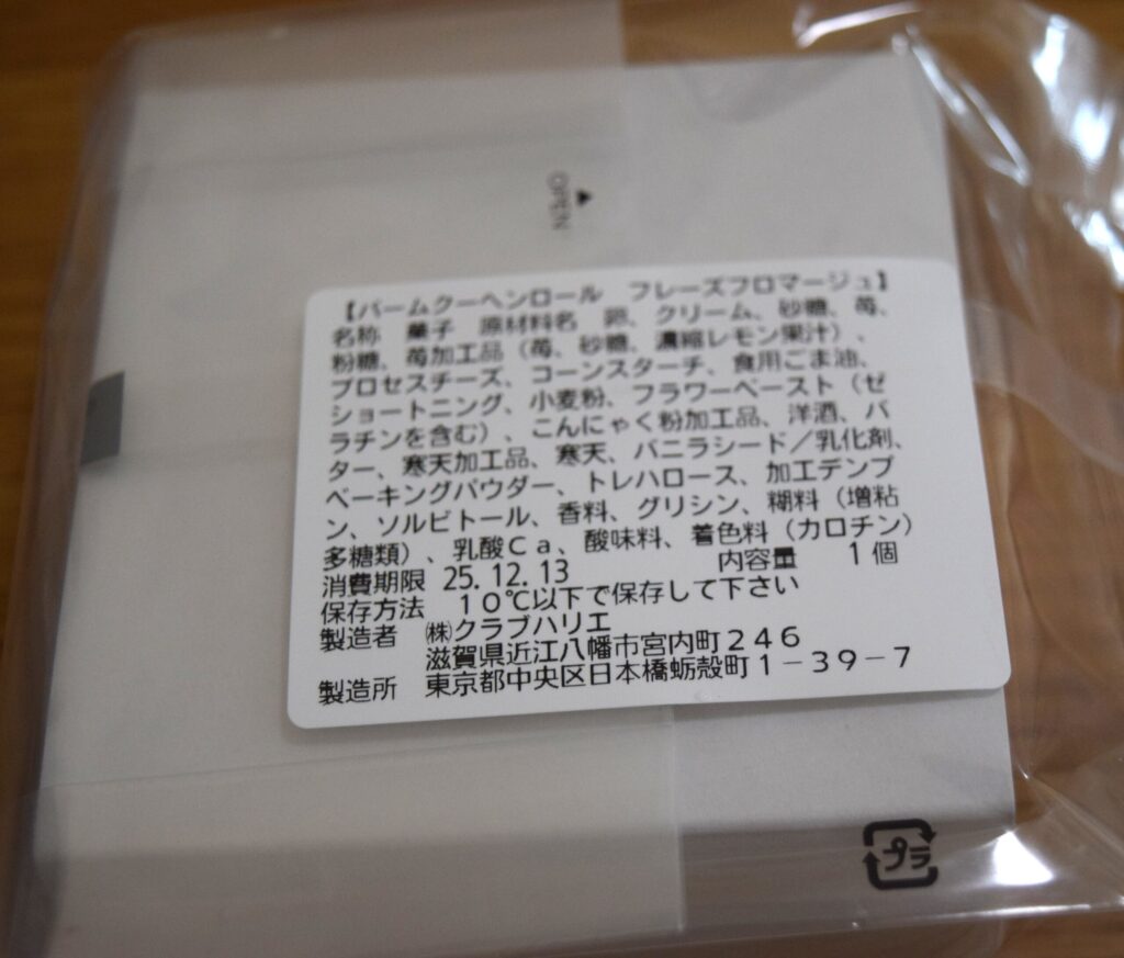 クラブハリエ水天宮前店 バームクーヘンロールフレーズフロマージュ