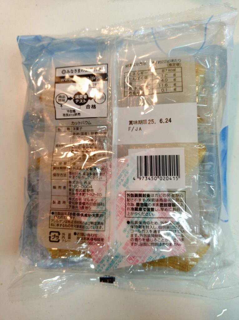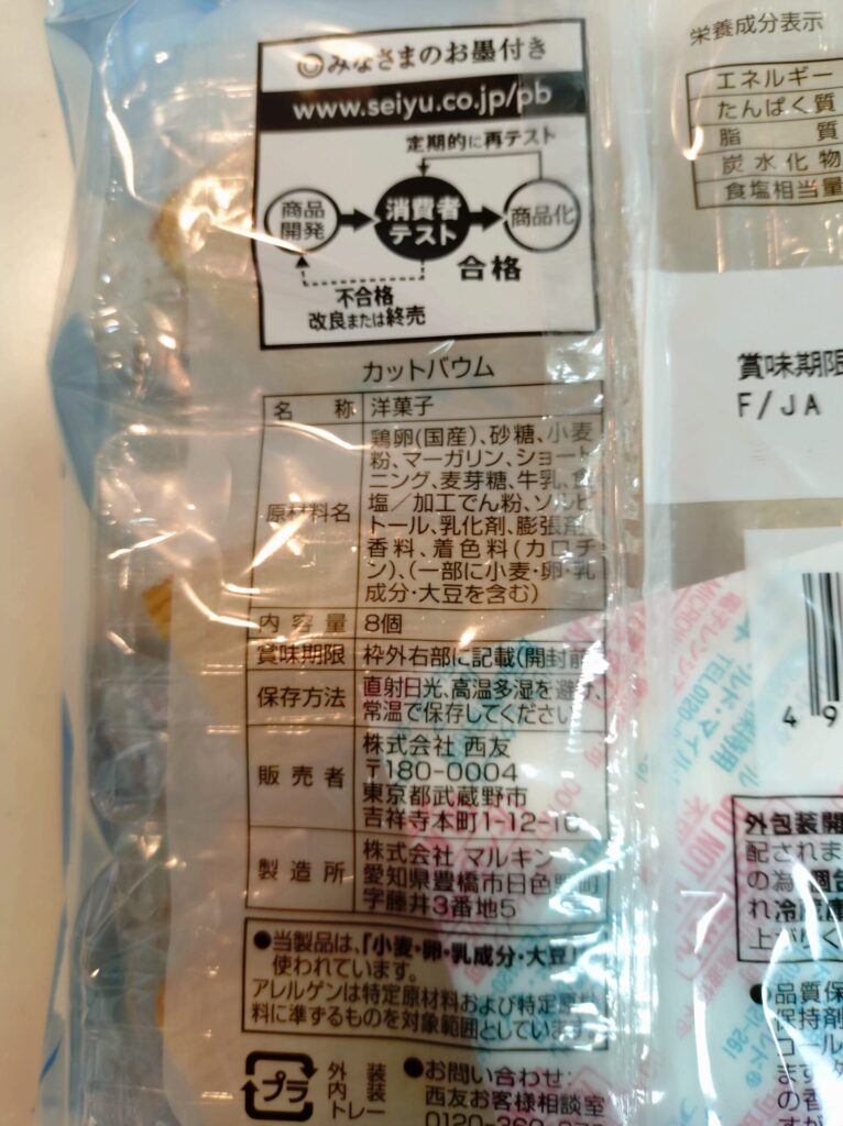 西友で購入!西友のみなさまのお墨付きシリーズというのがあるようですね。ローソンのカットバウムにも麦芽糖が入っているの味わいがにてそうですが、こちらは卵の量が多いみたいなのでそこ期待ですね!