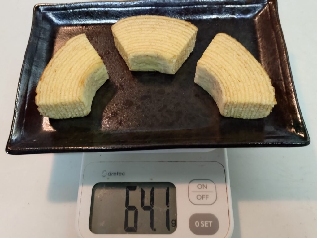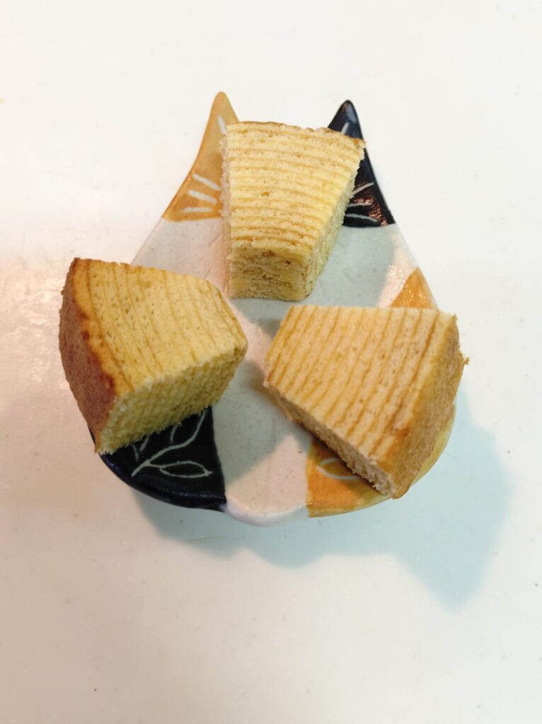 味は卵とミルク、マーガリンの味わいで一般的なバウムって感じで、もう実家の味です。