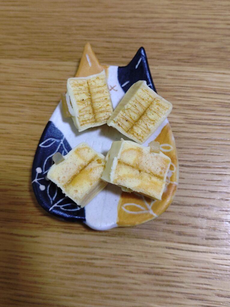 ホワイトチョコと生地の卵とバターの甘さとレモンのほどよい酸味が味わいに清涼感をもたらしてくれますね!
