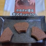 しっとりふわっとなチョコがけバウムクーヘン!生地のふわっと差がいいですね!加えてチョコレートもビター目なのでまた食べたいという気持ちが湧いてきます!限定商品なのでお早めに食べたほうがいいですね!