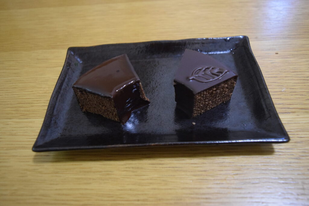 カカオの香りが強めのチョコレートですね!しっとりふわっとした生地でチョコレートの滑らかな味わいがします。チョコレートはビターで甘さ控えめですね。後味にはカカオの風味が残ります!