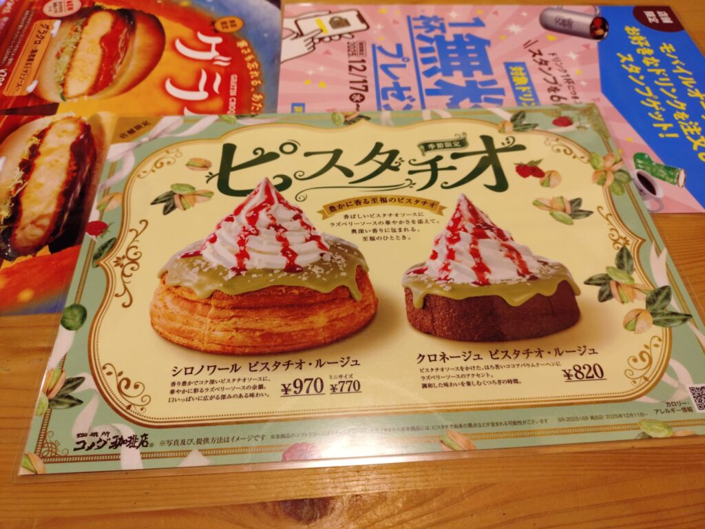 12月11日(木)からコメダ珈琲よりピスタチオのクロネージュが販売されるということで食べに行ってきました!